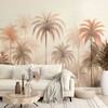 Diese beeindruckende Fototapete verwandelt deine Wände in eine tropische Oase. Das Motiv zeigt eine majestätische Palmenlandschaft, die in sanften Nebel gehüllt ist. Die warmen Farbtöne, von erdigen Brauntönen bis hin zu weichen Orangetönen, schaffen eine beruhigende und harmonische Atmosphäre. Die hohen Palmen sehen fast wie Gemälde aus und verleihen dem Raum eine elegante und dennoch entspannte Atmosphäre.