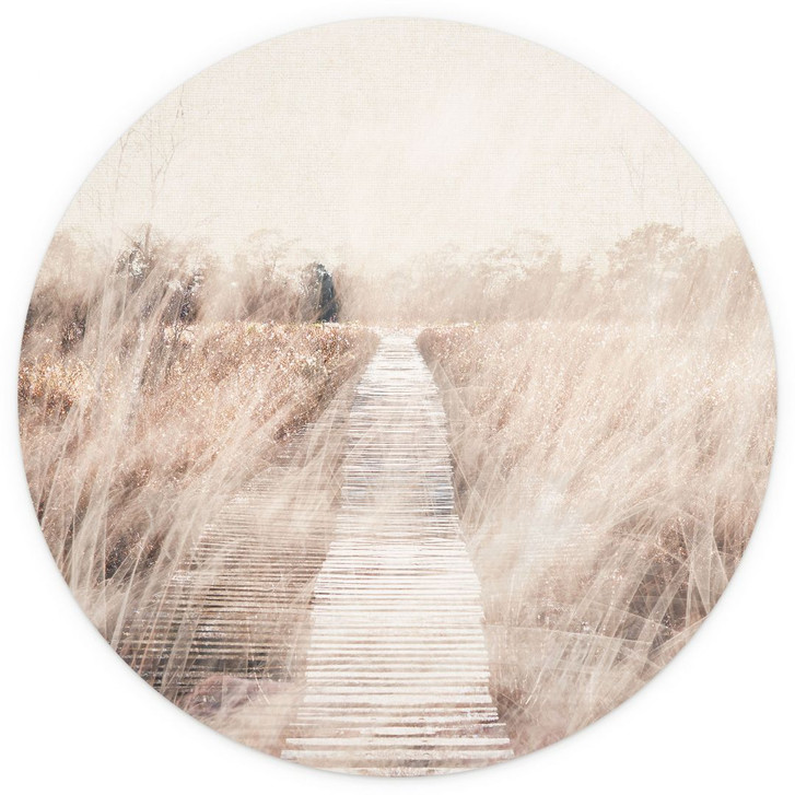 Fototapete Verträumte Landschaft mit Holzsteg - Imaginative - Rund - Selbstklebend/Vlies