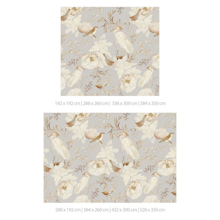 Die Fototapete von UN Designs bringt die Schönheit und Ruhe der Natur direkt in Ihre Wohnräume. Mit zarten Illustrationen von Vögeln und floralen Elementen in sanften Beige- und Cremetönen strahlt dieses Motiv eine angenehme Leichtigkeit aus. Der ruhige, graue Hintergrund setzt die feinen Zeichnungen gekonnt in Szene und bringt die zarten Details der Blätter und Blüten besonders gut zur Geltung. Diese harmonische Kombination schafft eine beruhigende Atmosphäre, die sowohl modernen als auch klassischen Wohnstilen eine besondere Note verleiht.
