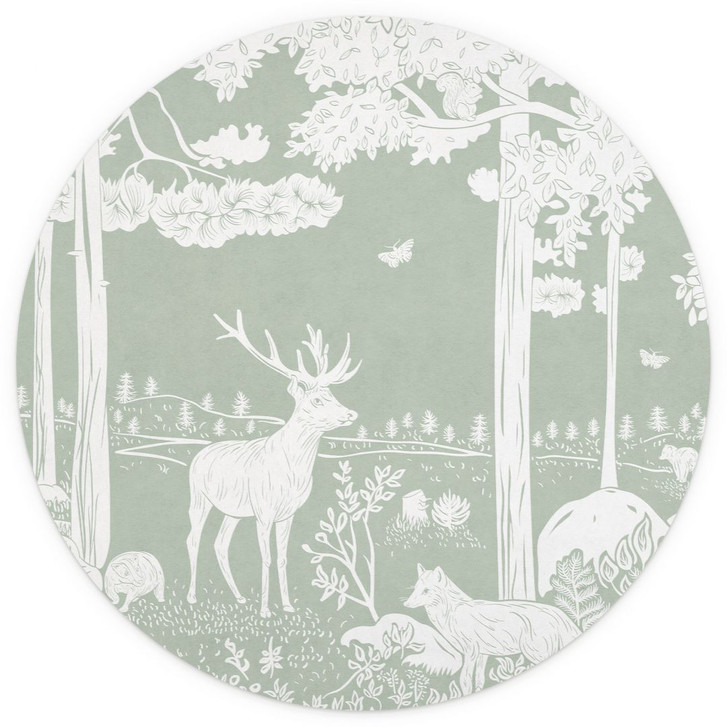 Diese wunderschöne runde Tapete von Kikki Belle verwandelt jede Wand in eine zauberhafte Waldlandschaft. Die handgezeichneten, zarten Tier- und Pflanzenmotive fügen sich harmonisch in die sanften Grüntöne ein und verleihen dem Raum eine beruhigende, natürliche Ausstrahlung. Die runde Form unterstreicht den märchenhaften Charakter des Designs und macht es zu einem stilvollen Blickfang.