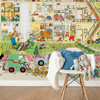 Auf den Wimmel-Fototapeten gibt es so viel zu entdecken! Oft werden Alltagssituationen liebevoll und kindgerecht dargestellt. Aber nicht nur Kinder, sondern auch Eltern und Grosseltern haben Freude daran, alle Details zu entdecken. Diese Fototapete zeigt ein Haus im Herbst mit all dem Trubel, der darin und darum herum herrscht. Zu sehen sind Drachen im Wind, Zugvögel, Kürbisse und spannende Kinderzimmer.
