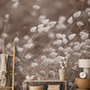 Dank der grossflächigen Darstellung kommen die filigranen Details der Samtgräser besonders eindrucksvoll zur Geltung. Diese Tapete eignet sich perfekt, um in Schlafzimmern, Wohnzimmern oder Büros eine natürliche und entspannende Atmosphäre zu schaffen. Die harmonische Farbkombination passt wunderbar zu einer Reihe verschiedener Einrichtungsstile und verleiht jedem Raum eine warme, beruhigende Ausstrahlung.