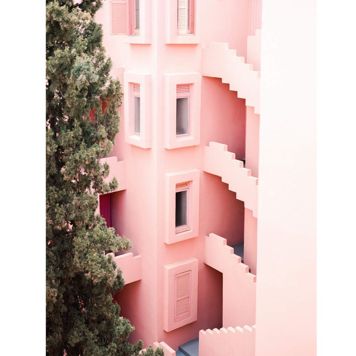 Entscheide dich für farbenfrohe Motive, um deinen Wänden einen neuen Look zu verleihen. Mit unserer Auswahl an dekorativen Motiven kannst du mit wenig Aufwand eine charmante Wandgestaltung schaffen. Diese Fotokunst von Zwart wird dich nach Spanien versetzen. An der Costa Blanca baute der Architekt Ricardo Bofill 1973 den postmodernen Apartmentkomplex „La Muralla Roja“ (die rote Mauer). Mit seinen zahlreichen unterschiedlichen Treppen, zickzackförmigen Wänden, dem burgähnlichen Dach und der rosa Farbe ist er ein architektonisches Meisterwerk.