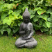 Sitzender Lao Buddha aus Kunststein, schwarz-silber | Edle Gartendeko für Meditation und Wellness | 20x15x33 cm