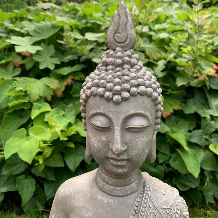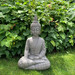 Sitzender Thai Buddha aus Kunststein, betongrau | Edle Gartendeko für Meditation und Wellness | 29x18x45 cm