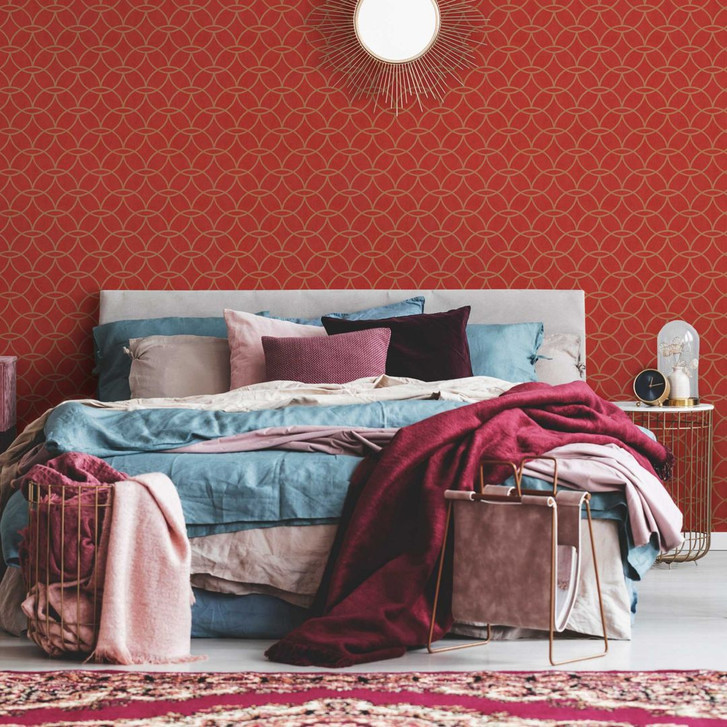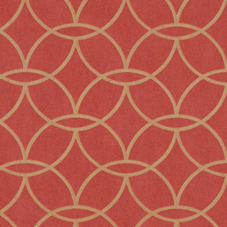 Glanz-Tapete Rot Gold - Geometrische Vliestapete