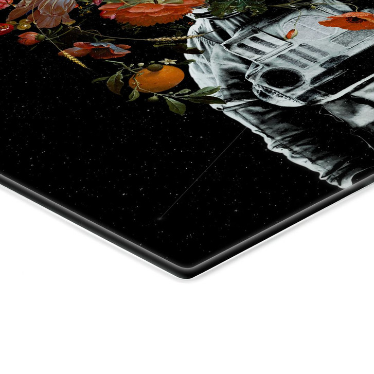 Glasbild Astronaut mit Blumen-Arrangement - Nicebleed