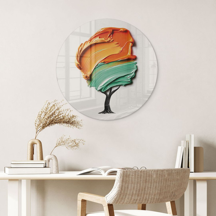 Glasbild Baum mit oranger und grüner 3D-Krone - Mielu - Rund