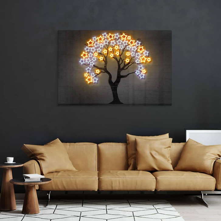 Glasbild Baum mit Sternen | Neon Kunst - Mielu