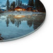 Dieses runde Glasbild zeigt die Abendstimmung am Emerald Lake im Yoho-Nationalpark in Kanada. Umgeben von einer majestätischen Berglandschaft spiegelt sich die Szenerie perfekt im ruhigen Wasser des Sees und schafft eine faszinierende Symmetrie. Das warme Licht einer Hütte am Ufer bildet einen reizvollen Kontrast zu den kühlen Blau- und Grautönen der Natur und lädt den Betrachter ein, in die Ruhe des Augenblicks einzutauchen.