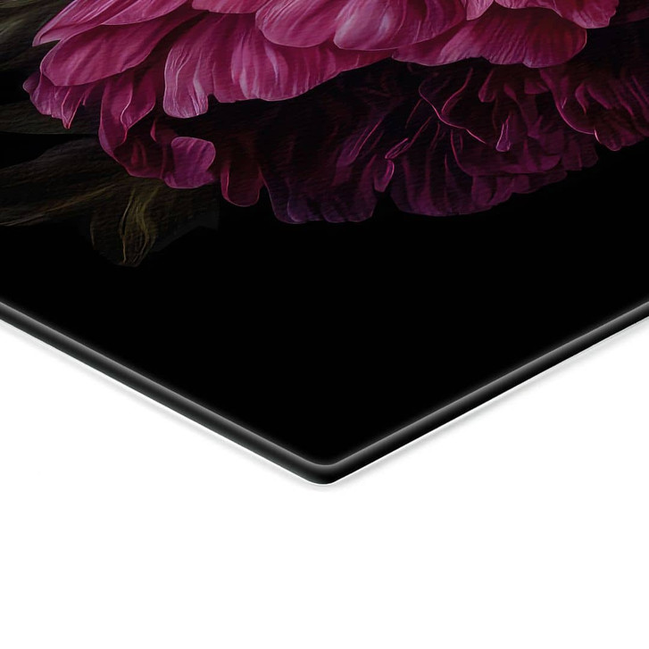 Hast du deinen eigenen Stil? Mit unserem Wandaccessoire kannst du ihn harmonisch zur Schau stellen. Verleihe deinem Wohnbereich eine unverwechselbare Atmosphäre. Der Kunstdruck von UN Designs zeigt einen Strauss Pfingstrosen in verschiedenen Rosa- und Violetttönen. Der Hintergrund ist schwarz und bildet einen starken Kontrast zu den farbenfrohen Blumen.