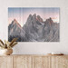 Verwandle deinen Wohnbereich in einen beruhigenden Ort, an dem du es dir mit unseren zeitgenössischen Motiven gemütlich machen kannst. Die Fotografie von Ariel Ling raubt dem Betrachter den Atem. Sie zeigt eine beeindruckende Ansicht einer Berglandschaft. Im Hintergrund geht die Sonne auf.