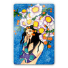 Die dunkelhaarige Frau besticht nicht nur durch ihre hellblauen Augen, sondern viel mehr durch den übertrieben grossen Blumenschmuck in ihrem Haar und die orangefarbenen Früchte. Die Künstlerin Hülya Özdemir malt Frauen in unterschiedlichen Posen, aber immer in fröhlichen und auffälligen Farben, die gut miteinander harmonieren. Ihre Kunstwerke setzen wunderschöne Farbakzente und lassen sich kreativ und stilvoll an den Wänden anordnen.