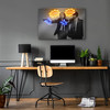Die bekannte Szene der beiden Auftragskiller Vincent Vega und Jules Winnfield aus dem Film „Pulp Fiction“. Die Darstellung der beiden mit einer Pistole in der Hand machte John Travolta und Samuel L. Jackson weltberühmt. Die Mischung aus Street Art, Pop Art und Comic macht das Motiv einzigartig. Die neonfarbenen Elemente setzen auffällige Akzente und machen die Filmszene zu einem besonderen Hingucker an der Wand.