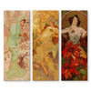 Die Zeit des Jugendstils und der Maler Alfons Mucha sind untrennbar miteinander verbunden. Bis heute gelten die Entwürfe Muchas für die Schauspielerin Sarah Bernhardt als frühe Höhepunkte der Jugendstil-Plakatkunst. Der vielseitige Künstler arbeitete auch mit Illustrationen und Fotografie. Das Glasbild „Mucha 3-teilig“ gibt dir einen dreifachen Eindruck von der Schönheit der Bilder Muchas. Jedes der drei Glaselemente zeigt eine weibliche Schönheit, die sich in Aussehen, Farbe und Blumendekor unterscheidet. Die hochwertigen Kunstdrucke auf Glas sind mit ihrer Grösse von 3 x 40 x 100 cm ein beeindruckender Blickfang in jedem Raum. Mit diesem 3-teiligen Set können Sie das räumliche Ambiente in Wohn- und Schlafzimmern aufwerten. Die harmonischen Farben passen zu den unterschiedlichsten Einrichtungsstilen und lassen sich perfekt mit passenden Deko-Accessoires kombinieren.