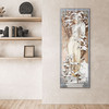 Bevor sich der tschechische Maler Alfons Mucha seiner künstlerischen Ausbildung in Paris zuwandte, verdiente er seinen Lebensunterhalt mit Aufträgen für Wandmalereien und Bühnendekorationen. Mucha verdiente seinen Lebensunterhalt mit dem Illustrieren von Büchern, bevor ihm die Gestaltung eines Filmplakats zum Durchbruch verhalf. Diese Arbeit katapultierte ihn an die Spitze der künstlerischen Karriereleiter und er wurde bald zu einem der gefragtesten Plakatmaler. Auf dem Glasbild „Mucha - Jahreszeiten: Winter 1900“ ist eine junge Frau im typischen Stil von Mucha zu sehen. In einen weissen Mantel gehüllt, trotzt die Frau dem kalten Schnee, der den Winter an Bäumen und Sträuchern sichtbar macht. Eine wunderschöne Wanddekoration, die in der Grösse 40 x 100 cm einen beeindruckenden Blickfang bietet. Die anderen Jahreszeiten sind auch als hochwertiger Kunstdruck auf Glas erhältlich.