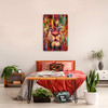 Der Löwe steht für Mut, Stärke und Stolz. Er wird majestätisch in leuchtenden Rottönen dargestellt. Bei genauerem Hinsehen erkennt man viele weitere Farben, die wie zufällig in dünnen Linien gemalt zu sein scheinen. Das Kunstwerk weckt in uns einen starken Willen und Entschlossenheit.