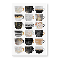 Das Motiv, eine fotografische Nahaufnahme von Flüssigkeit, die in ein edles Cocktailglas gegossen wird, ist in einem stilvollen Fotodesign gestaltet. Das moderne Wandbild vereint auf perfekte Weise klare Linien und Dynamik.