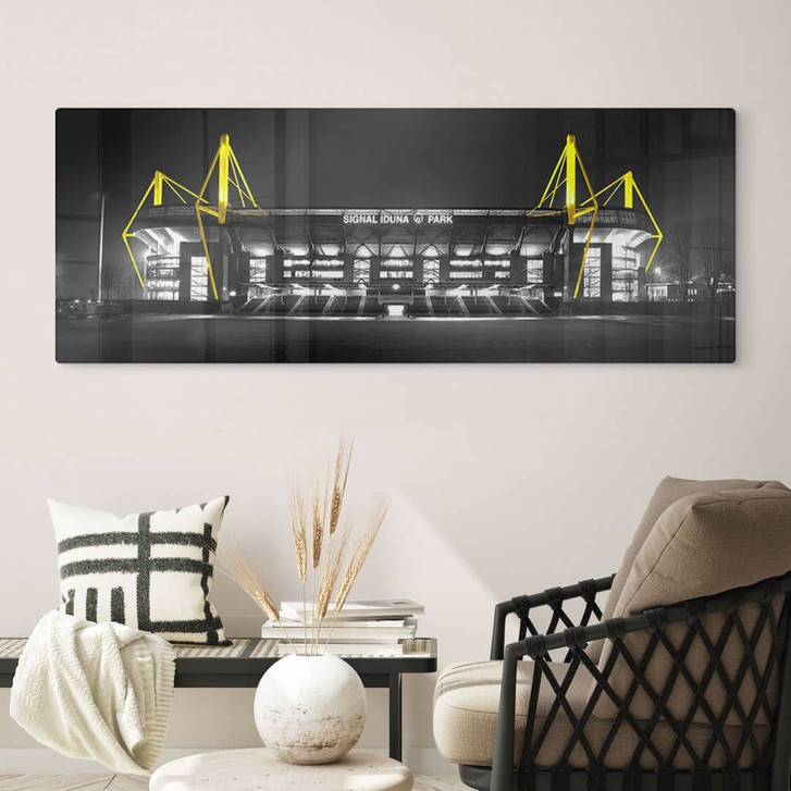 Ob als Heimat leidenschaftlicher Fans oder Wahrzeichen einer ganzen Stadt – das Stadion in Dortmund steht für unvergessliche Fussballmomente, grosse Emotionen und eine einzigartige Atmosphäre. Das Motiv bringt die Magie dieses Ortes direkt in die eigenen vier Wände oder ins Büro und sorgt für eine beeindruckende Wandgestaltung.