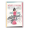 Mitte der 80er Jahre war dies ein Lied von Madonna, das oft im Radio zu hören war. Die rhythmische Melodie und der provokante Text luden zum Mitsingen ein und der Ohrwurm ist auch heute noch ein Gute-Laune-Hit. Das plakative Motiv zeigt eine selbstbewusste Frau in einem schicken Abendkleid. Die Textpassage aus dem berühmten Lied „We are living in a material world and I am material girl“ rundet den Kunstdruck in modernem Design perfekt ab.