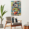 Ankommen und einfach mal abschalten – das geht am besten in den eigenen vier Wänden. Hol dir dieses Wandbild nach Hause und schaffe dir eine ausgeglichene Umgebung. Der Kunstdruck von Treechild zeigt die berühmte Disney-Figur Micky Maus. Stolz posiert er im Astronautenanzug. Im Hintergrund fliegen bunte Comics und leuchtende Sterne umher. Das Motiv ist im Vintage-Stil gestaltet und passt nicht nur in ein Kinderzimmer.