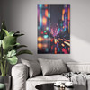 Ankommen und einfach nur entspannen – das geht am besten in den eigenen vier Wänden. Hol dir diese Wandkunst nach Hause und schaffe dir eine ausgeglichene Umgebung. Die künstlerische Fotografie von Treechild versetzt dich direkt in die Grossstadt. Nachts im Dunkeln sind die bunten Lichter von Autos, Werbung und anderen Beleuchtungen besonders intensiv.