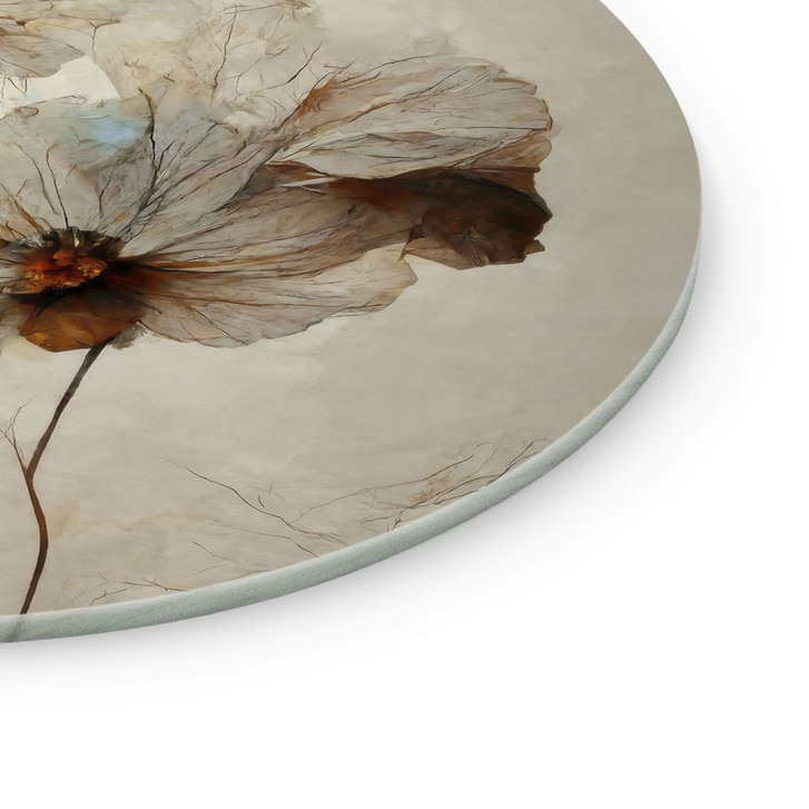 Bringen Sie die zarte Schönheit der Natur in Ihr Zuhause mit diesem exquisiten runden Glasbild von Treechild. Die zarten Trockenblumen entfalten sich in sanften Beige- und Erdtönen und schaffen eine beruhigende, harmonische Atmosphäre. Die feinen Linien der Blumen und das subtile Spiel des Lichts lassen das Motiv fast schwerelos erscheinen und verleihen deinem Raum eine natürliche, elegante Ästhetik.
