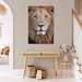 Majestätisch blickt das Königstier in die Kamera. Der Löwe ist ein Raubtier, das mit seiner starken Ausstrahlung und der auffälligen Mähne die Blicke auf sich zieht. Der Löwe steht für Mut, Stärke und Durchsetzungsvermögen. Das wild-animalische Fotomotiv eignet sich ideal für den Flur als Aushängeschild in den eigenen vier Wänden. Aber auch im Wohn- und Schlafzimmer sorgt das Löwenbild für Stimmung. Gestalte mit dieser Tierfotografie eine eindrucksvolle Wand!