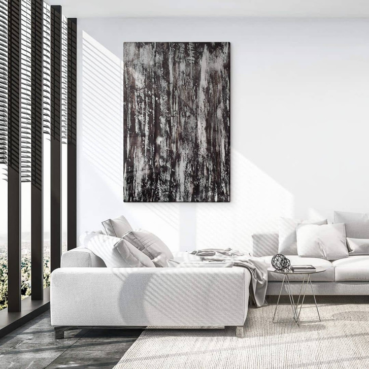 Völlig losgelöst vom Gegenstand bietet dieses Gemälde mit schwarzen Pinselstrichen dem Betrachter eine Reihe von Interpretationen und Emotionen. Manchmal wirken die Streifen streng kontrolliert, manchmal zufällig entstanden. Die Abstraktion ermöglicht es, das neutrale Bild an vielen Orten zu platzieren. Ob in den eigenen vier Wänden, am Arbeitsplatz oder in einer Praxis: Das kreative Werk als Glasbild schafft Raum für Anregungen und Fantasien.