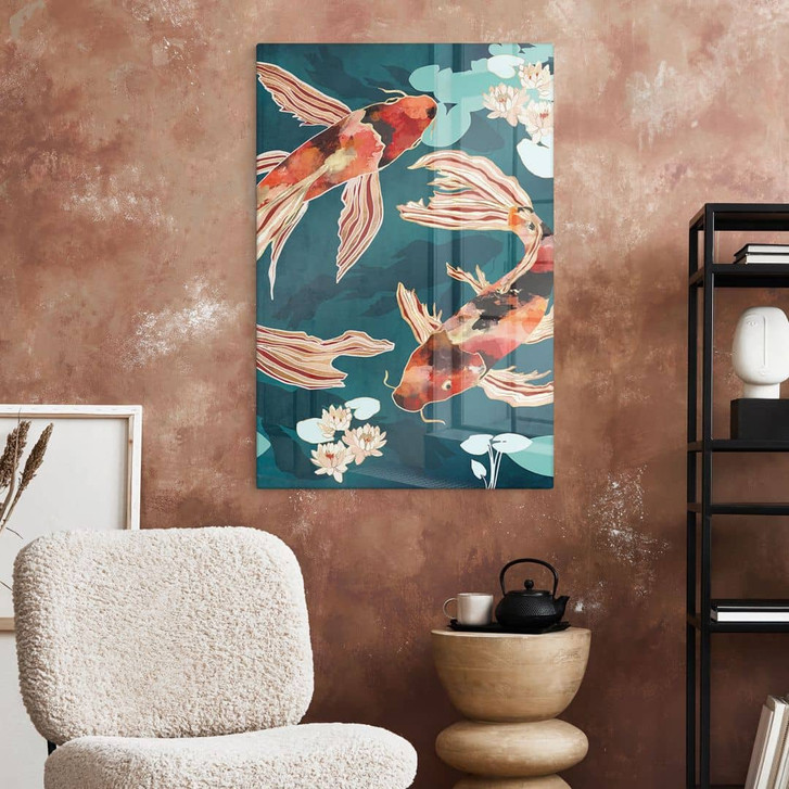 Glasbild Zwei Kois im Teich - SpaceFrog Designs