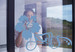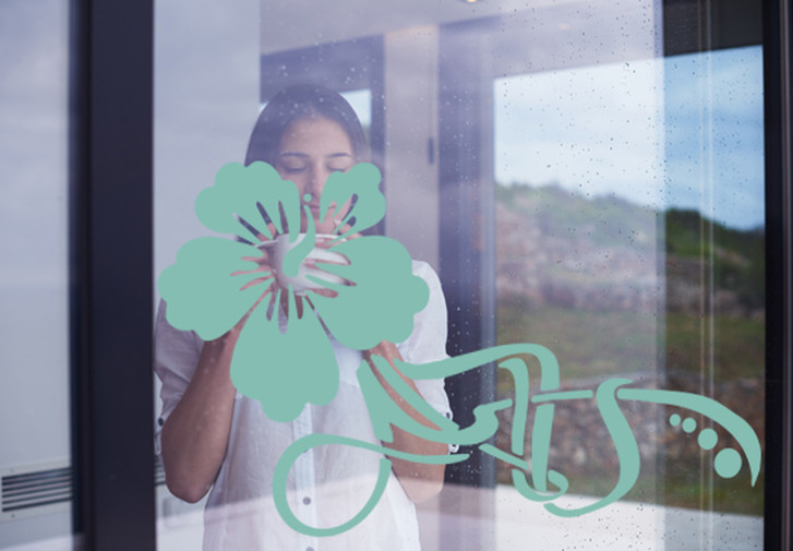 Halte dein Motiv mit der klebenden Seite an die gewünschte Stelle. Drück das Motiv nun mit der Hand oder einem Filzrakel fest auf die Glasfläche.