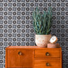 Grafik-Tapete mit Kreismuster Schwarz Weiss - Vliestapete im Retro-Stil