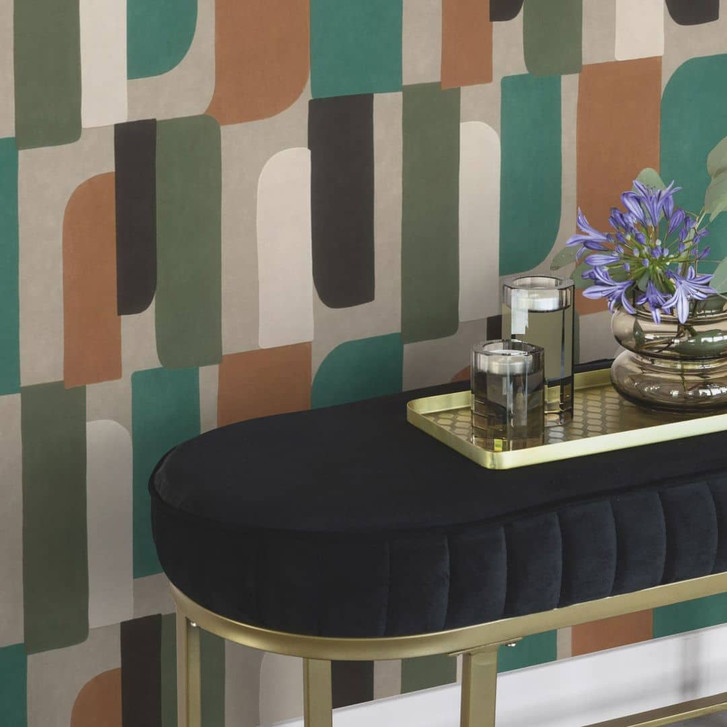 Ein Hauch von Abstraktion und Modernität erwartet Sie mit diesem grafischen Tapetenmuster. Verschieden grosse Formen mit Ecken und Rundungen fügen sich zu einem harmonischen Gesamtbild zusammen. Mit ihrer textilen Struktur und der gekonnten Farbkombination aus Beige, Taupe, Türkis, Olivgrün, Ockerbraun und Schwarz erzeugt diese Vliestapete eine faszinierende visuelle Dynamik. So lassen sich mit ihr sowohl Wände in modernen als auch in schicken Altbauten stilvoll verkleiden.Produktinformation: