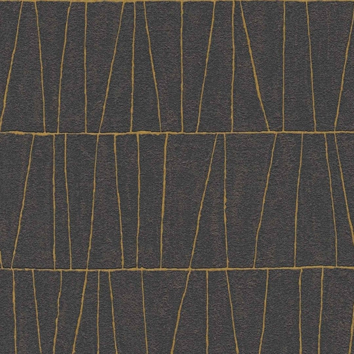 Grafische Tapete mit Linienmuster Schwarz Gold - Grafik-Mustertapete liniert - Vliestapete