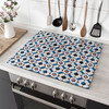 Diese stilvolle Kochfeldabdeckung besticht nicht nur durch ihr farbenfrohes Design, sondern auch durch ihre praktische Funktionalität. Mit ihrem modernen geometrischen Muster, das durch florale Motive ergänzt wird, bringt sie frischen Wind in die Küche. Die dominierenden Blau- und Weisstöne harmonieren perfekt und setzen stilvolle Akzente auf jeder Arbeitsfläche.