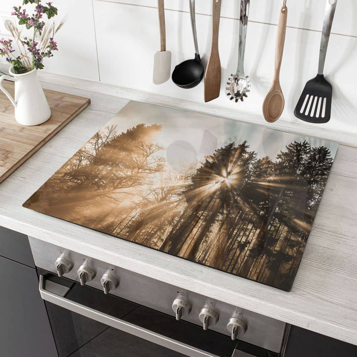 Herdabdeckplatte Lichtstrahlen im Wald | Natur-Motiv für die Küche - Eisenmann