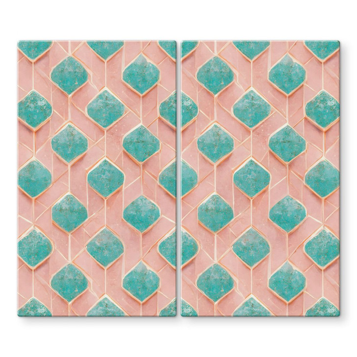 Herdabdeckplatte Rautenmuster in türkis und rosa - Treechild