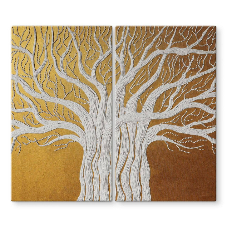 Herdabdeckplatte Weisser Lebensbaum abstrakt - Grande