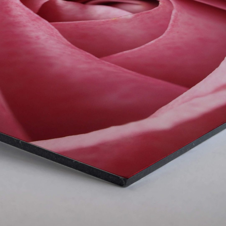 Ob in der Küche oder im Schlafzimmer, das Hexagon mit der beeindruckenden Detailaufnahme einer blühenden Rose macht sich immer gut an der Wand.