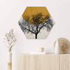 Der Baum ist das beste Symbol für unser Leben: Mit seinem Stamm und den zahlreichen Ästen steht er für den Platz, den wir im Leben einnehmen, aber auch dafür, dass wir unterschiedliche Wege mit Höhen und Tiefen gehen werden. Der Baum ist ein starkes Symbol, das in Kombination mit der goldenen Sonne den Raum eindrucksvoll mit Wärme erfüllt.