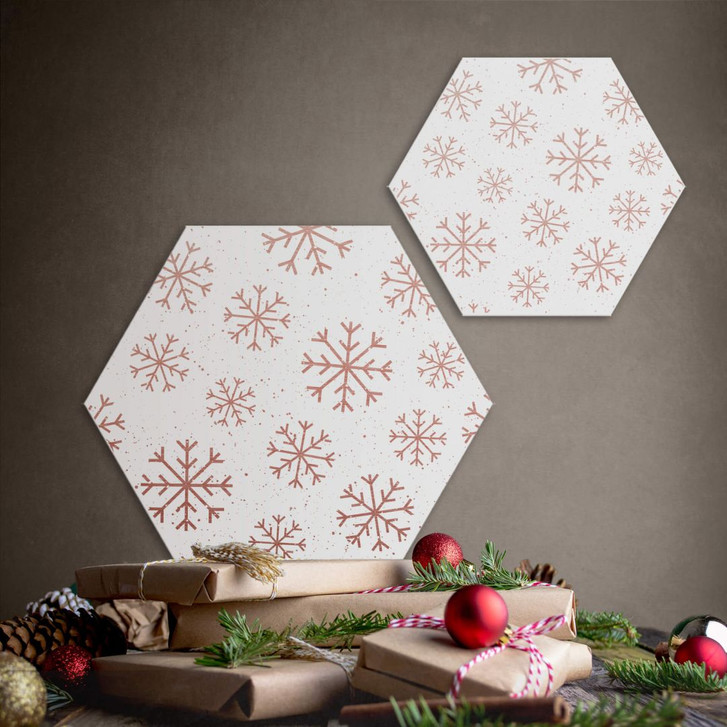 Hexagon - Alu-Dibond-Kupfereffekt Schneeflocken Eiskristalle
