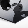 Diese Zeichnung zeigt das Porträt eines Mädchens mit kurzen Haaren und einem Hut mit Federn. Bei diesem schwarz-weissen Motiv sticht das weisse Herz im Brustbereich hervor. Gestalte deine Lieblingswand mit den ausdrucksstarken Illustrationen von Ruben Ireland und verwandle deine Wände in einen tollen Hingucker!
