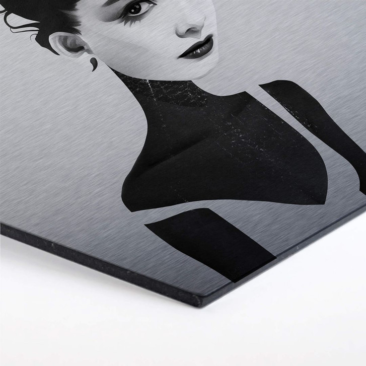 Diese Zeichnung zeigt die damals junge Schauspielerin Audrey Hepburn in Schwarz-Weiss. Ihr markantes Gesicht und ihre dunklen Rehaugen sind unverkennbar. Entscheide dich für trendige Wandkunst und verschönere deine Wand stilvoll mit aussergewöhnlicher Kunst von Ruben Ireland!