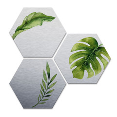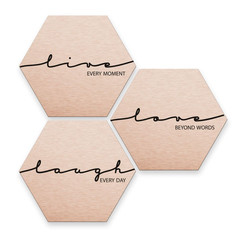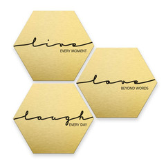 Hexagon - Alu-Dibond-Silbereffekt - Live Laugh Love (3er Set)