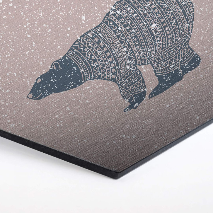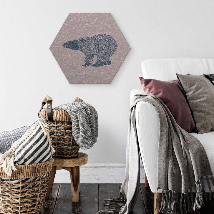 Hexagon - Alu-Dibond-Silbereffekt Polarbär Blau