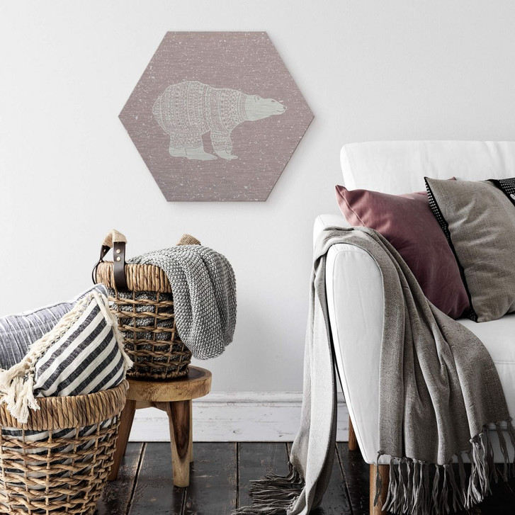 Hexagon Aluminium Dibond Silber Effekt Eisbär weiss
