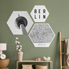 Das dreiteilige Hexagon-Set besteht aus den Motiven „The TV Tower“ (55 x 47 cm), „Typography Berlin“ (35 x 30 cm) und „Berlin City Map“ (75 x 65 cm). Hol dir ein Stück Berlin nach Hause! Wir bieten dir eine vormontierte Wandhalterung für eine schnelle Wandmontage an.