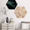Die Hexagone überzeugen nicht nur durch Nachhaltigkeit und Umweltverträglichkeit, sondern auch durch ihre natürliche und einzigartige Optik. Jedes Sechseck hat durch die Holzmaserung und die kreuzweise verleimten Holzschichten eine individuelle und robuste Optik. Das Motiv wird direkt auf eine stabile Birkenfurnierplatte gedruckt, sodass die Struktur des Holzes durch das Motiv schimmert.