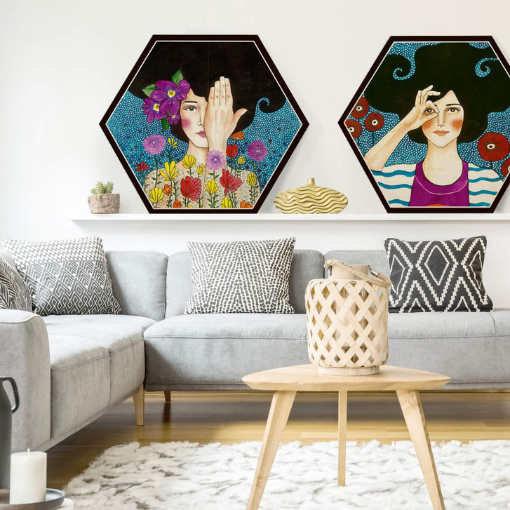 Gestalte mit unseren Hexagon-Wandbildern eine einzigartige Galerie an deiner Wand. Unsere waben- oder sechseckigen Wandbilder können zu einem trendigen Hingucker in deinem Zuhause werden. Die einzelnen Dekoelemente lassen sich nicht nur beliebig anordnen, sondern auch jederzeit ergänzen. Dabei stehen nicht nur eine Vielzahl an Motiven zur Auswahl, sondern auch eine Reihe unterschiedlicher Materialien. Ob Holz, Alu-Dibond mit Metallic-Effekten oder Wandtattoos – die Gestaltungsmöglichkeiten sind grenzenlos.