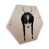 Dekoriere in einem modernen Stil und schaffe mit unserer Wandkunst eine entspannte Wohnumgebung. Diese Illustration ist ein wunderbarer Blickfang für deinen Raum. Dieses Porträt hat eine magnetische Wirkung, da dunkle Geheimnisse hinter den langen schwarzen Haaren und dem auffälligen Kopfschmuck verborgen liegen. Lass dich von dem Hexagon-Bild verzaubern! Als Naturprodukt bringt das Holzbild ein besonders angenehmes Raumklima zu dir. Seine natürliche Maserung macht jedes Stück zu einem Unikat, während seine cremefarbene und schwarze Farbgebung es trendig und modern aussehen lässt.